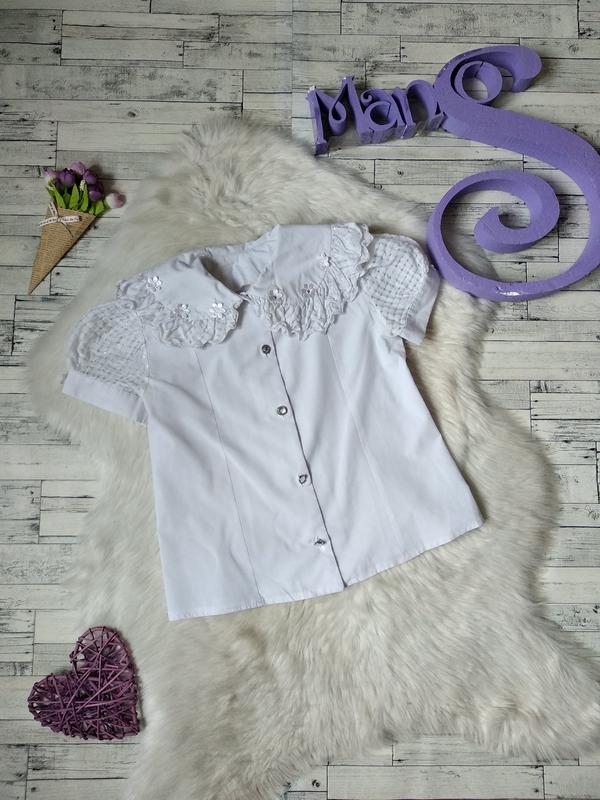 Блузка біла на дівчинку в ідеальному стані Розмір 9 років,зріст 134 см Заміри: довжина 44 см рукав 15 см плечі 29 см ПОГ 38 см ПОТ 37 см колір білий склад 35% поліестер,35% бавовна
