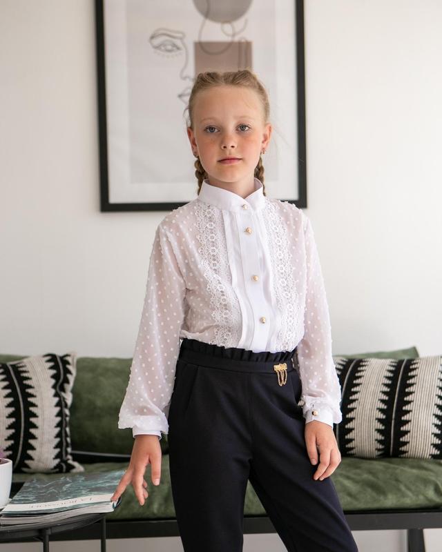 Чудова блуза для дівчинки. Тканина шифон з мереживом. Застібається на гудзики На цей товар нема наложки 💚