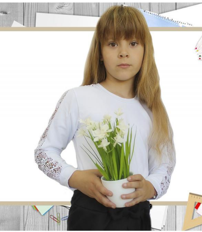 Блуза для школи зі вставками з гіпюру Полотно: стрейч кулір спів Склад:95%х/б +5% лікра ЗАМІРИ НА ОСТАННЬОМУ ФОТО Ціна залежить від розміру 60 116-122 43 30 38=110грн 64 122-128 45 32 41=125грн 68 128-134 47 34 43-130грн 72 140 49 36 46=140грн
