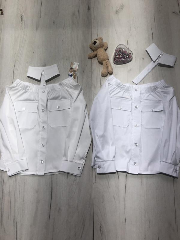 шкільна сорочка для дівчинки зі знімним коміром-чокером. Сорочка пошита з легкої, повітряної тканини софт. Спереду є функціональні накладні кишені, передня планочка сорочки, застібається на гудзики, рукава на манжеті. В комплект входить знімний комір-чокер. Матеріал: Софт Розмір: 128,134,140,146,152 зростання Колір: Білий ЗАМІРИ ПО ПРИБУТТЮ!!! ПОЛНОМЕРКА!!! 128рост-2шт 134рост-2шт 140рост-2шт 146рост-2шт 152рост-2шт