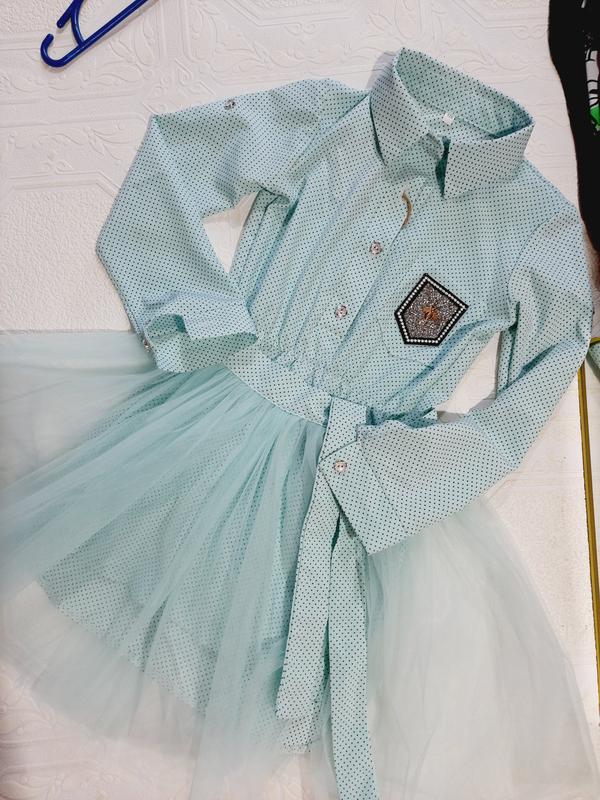 Дуже класна і стильна сорочка-плаття на худеньку дівчинку 5-7 років. Колір-ніжна бірюза Тканина-софт (легчайшая і з холодком) Прикраса-на кишені якісна нашивка з каменів. Спідниця з легкого фатину на зав'язках. Цю річ можна комбінувати під колготочки( з спідничкою), під лосиночки ( без спіднички). Дуже РЕКОМЕНДУЮ! Зазначений зростання 128см. Розміри: Довжина по спинці 63 см Ширина по плечах 28 см Ширина під пахвами (полуобъем) 33 см Довжина рукава від плеча (трансформер) 45см ПІТ 30см Звертаю Вашу увагу, що за післяплатою я не працюю (особистий негативний досвід, є непорядні люди...). Зі свого боку, гарантую своїм покупцями повне задоволення (від опрацювання замовлення до якості одягу) і надійність. Угода проводиться через сайт даного маркет-плейса для безпеки сторін з обов'язковими відгуками покупців. Оплата обраного товару проводиться або через Приватбанк, або Монобанк, або ПУМБ. Дякую. Приємного перегляду та вигідних покупок!