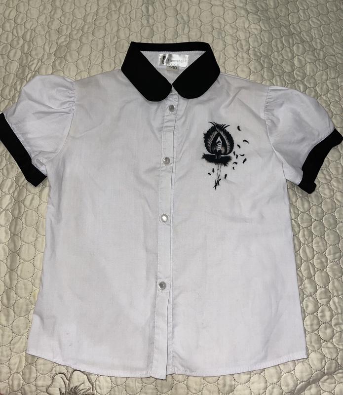 Размер 140 см. Длина по спине 47 см. Длина рукава 14,5 см. Полуобхват груди 40 см. Ширина плеч 35 см
