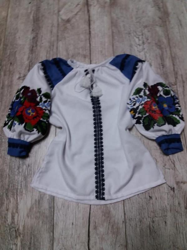 Машинна вишивка, розмірний ряд від 3-х до 12 років. Можлива індивідуальна корекція, а також зміна кольору ниток та тканини.
