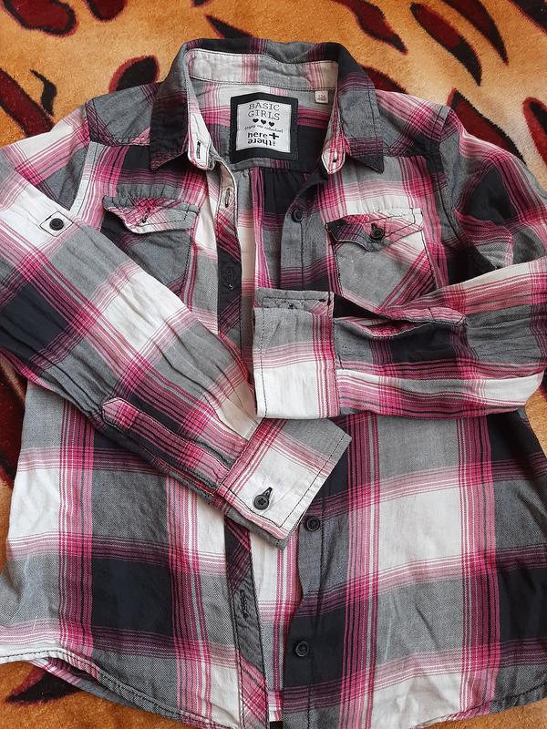 Рубашка для девочки, можно подвернуть рукав, размер 134/140.