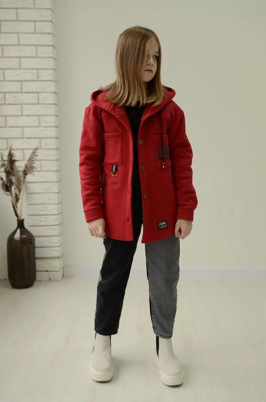 Трьохнитка на флісі Тепла Червоний колір Заміри ⬇️⬇️⬇️ ✅128р рукав від шиї 52 груди 38 довжина 52 ✅134р рукав від шиї 55 груди 41 довжина 55 ✅140р рукав від шиї 58 груди 42 довжина 57 ✅146р рукав від шиї 60 груди 42 довжина 60 ✅152р рукав від шиї 62 груди 44 довжина 61.