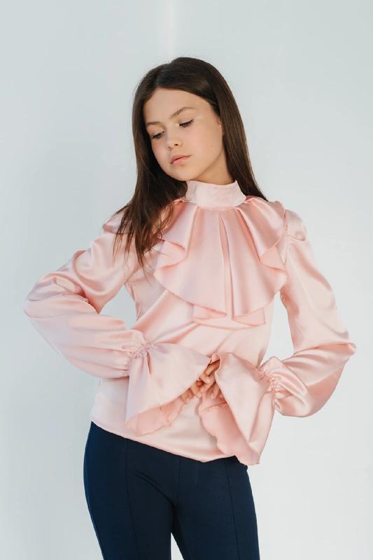 Розміри ,140,146,152,158,164 Блуза «Грейсі»🤍🤍🤍 Ніжно персиковий колір з рожевим відтінком Тканина-королівський атлас Заміри: Блуза Довжина/ рукав /пог 134- 49/53/35 140- 51/55/36 146- 53/59/38 152- 56/61/40 158- 58/63/42 164- 60/66/45 +- 2 см