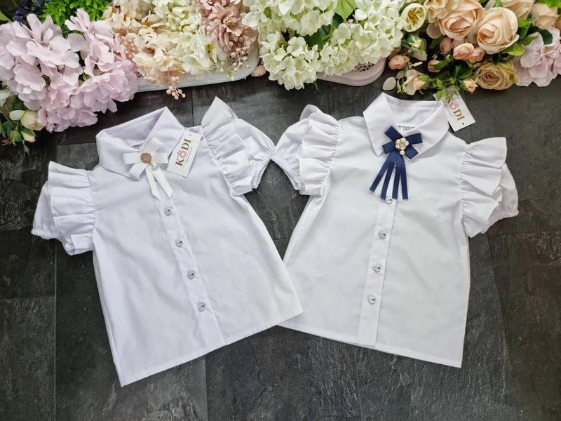 Стильна блузка короткий рукав Тканина котон, бавовна Брошка у комплекті довж/пог 122р-42/33 128р-44/34 134р-46/37 140р-48/39 146р-49/40 ÷