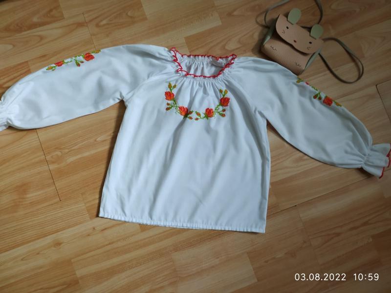 Вишиваночка в хорошому стані, на вік приблизно 4-5 років, може бути й довше дітки різні.. Видимих дефектів немає. Горловина на резиночці, що полегшує одягання. Довжина 41 см. Ширина підмишками 38 см. Рукавчик від горловини 42 см. Обміну і повернення немає, задавайте питання всім відповім. Оплата на картку Приватбанку. Доставка УП,НП оплата при отримані.