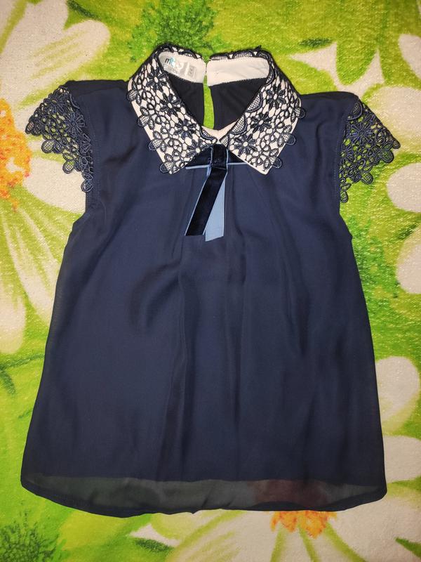 Нова блузка футболка для дівчинки темно синього кольору, розмір 32(122-134). ог-31см, довжина 44см,плечі 30см