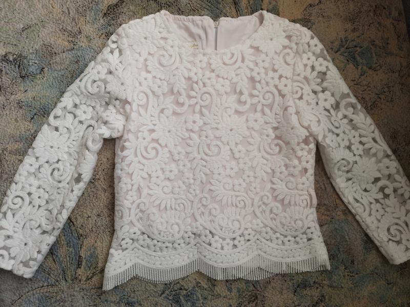 святкова блузка турецька якісна тканина, кружево довжина кофти 42см довжина рукава 39см стан блузки ідеальний розмір 140