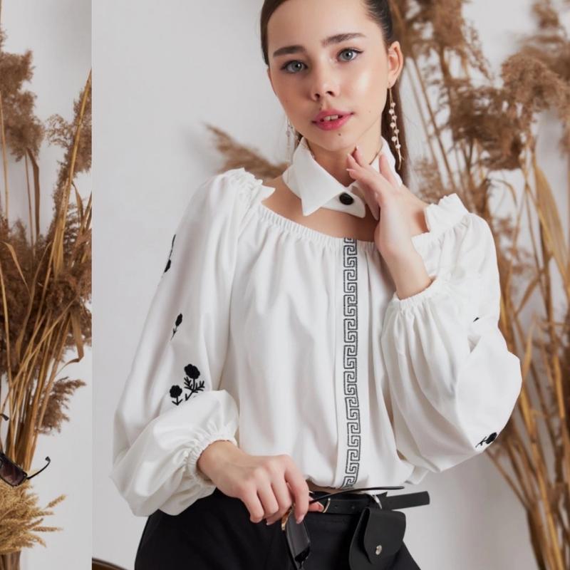 Блуза з чокером -комірцем Неперевершена краса всього лише один рух рукою І вона без чокера Справжня вишивка оздоблює рукава та планку. 📌 Тканина-діагональ 📌 Розмір 140-1шт 146-1шт 152-1шт 158-1шт 164-1шт