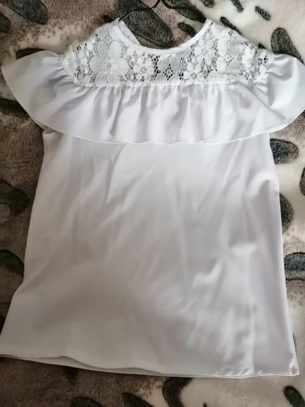 Легка, літня блуза. Брали на 1 вересня. Верх красивий прошитий. Застібка-ґудзик на спині. Розмір 146. Півобхват грудей - 38 см. Довжина - 50 см.