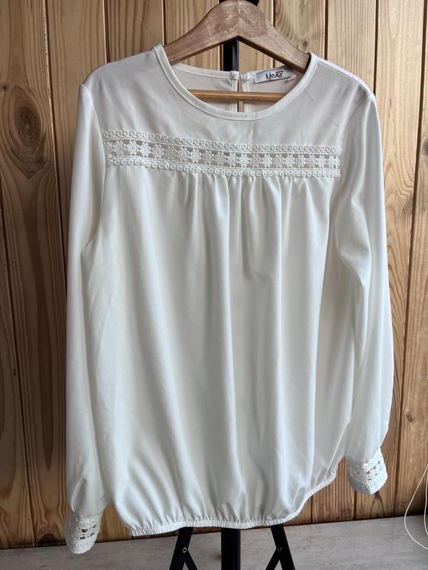 Блуза в гарному стані, молочного кольору. Купували до школи та одягали декілька разів. Довжина рукава 49 см Довжина блузи 50см Ширина 39 см