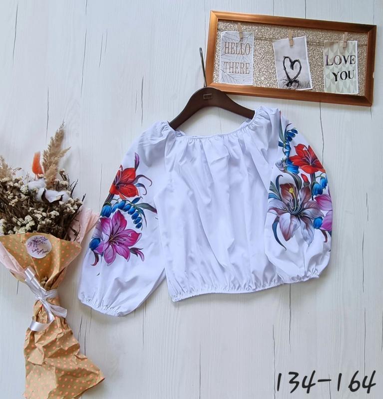В НАЯВНОСТІ ЯСКРАВІ БЛУЗИ З КВІТКОВИМ ОРНАМЕНТОМ Тканина супер софт малюнок якісний(не линяє,не вистірується і не тріскається) РЕКОМЕНДУЮ! ЗАМІРИ: 134(немає)-довжина 40,пог 44,рукав 45 140(1 шт)-довжина 42,пог 45,рукав 47 146(1 шт)-довжина 44,пог 47,рукав 50 152(1 шт)-довжина 45,пог 49,рукав 52 158(1 шт)-довжина 48,пог 51,рукав 54 164(1 шт)-довжина 52,пог 55,рукав 55 +-2 см Ціна 580 грн
