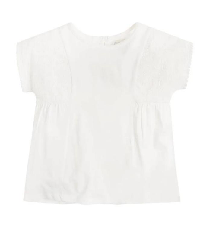 АРТ. 127 Дуже ніжна і красива блузка-футболочка🤍 Дивовижне якість! Cool Club 💥 Прикрашена мереживом Розміри в наявності на зріст: 110см, 116см Виміри за запитом