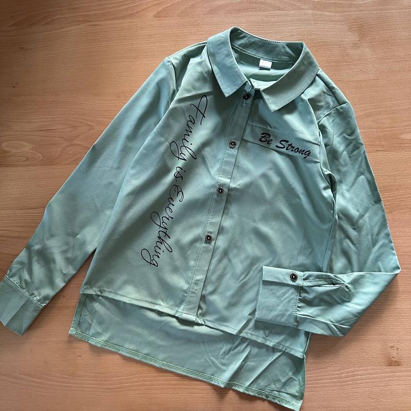 Стильная блуза отличного качества. Застежки-пуговицы. Написи- накат! Тканина -шифон. Размеры: 140 - длина 48 см, рукав 54 146 - длина 50 см, рукав 57 152 - длина 52 см, рукав 60 158 - длина 53 см, рукав 61 164 - длина 55 см, рукав 63 Цена: 415 грн