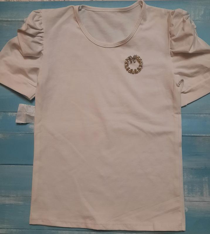 Нова блуза для свята білого кольору. Матеріал 100% бавовна. 32 розмір( зріст 110): ОГ - 58 см, довжина - 42 см. 38 (зріст 128): ОГ - 68 см, довжина 54 см.