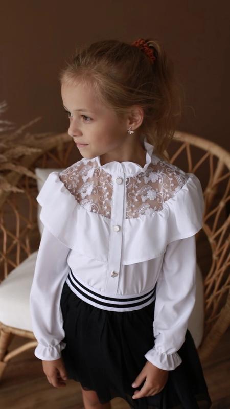 Школьная блузочка тканина софт украшена красивым кружевом Рекомендую!!! 116(4 шт)-длина блузы- 38,длина рукава от плеча-40, пог-32 122(4 шт)-длина блузы- 42,длина рукава от плеча -41,пог-33 128(4 шт)-длина блузы- 45,длина рукава от плеча -43,пог-34 134(1 шт)-длина блузы- 48,длина рукава от плеча-46,пог-36 140(4 шт)-длина блузы- 49,длина рукава от плеча -49,пог-38 +-1 см