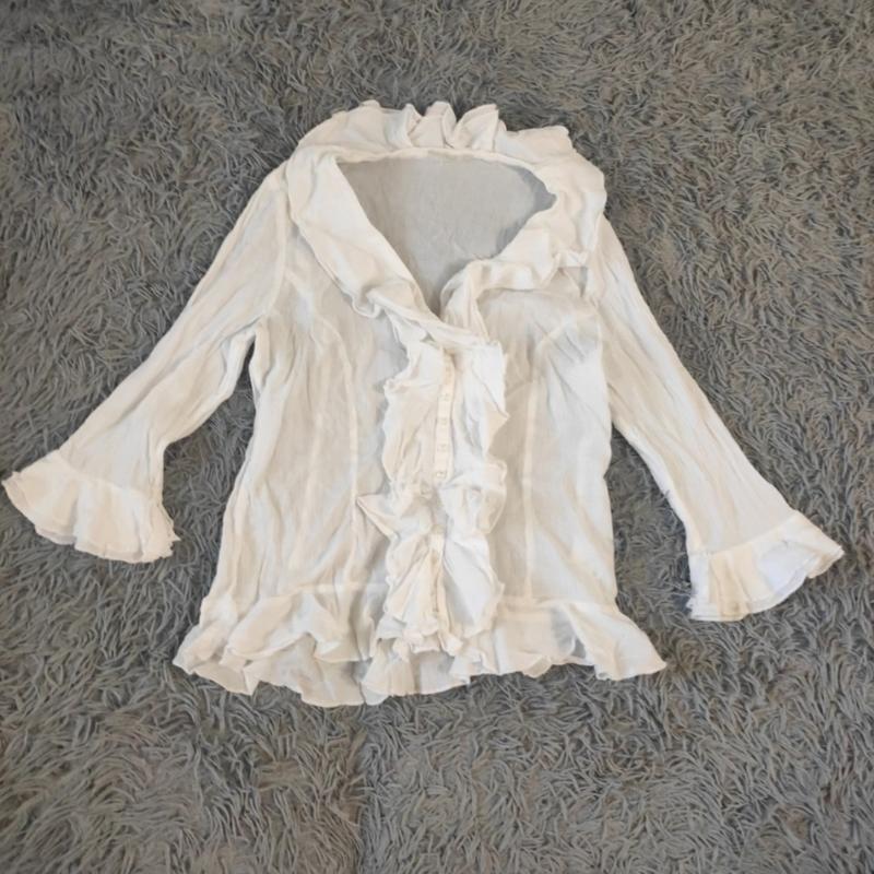 Блузка дуже легенька. Виглядає нарядно. Думаю приблизно на 10 років. Довжина повністю 55 см, рукав 41 см, ог42 см.