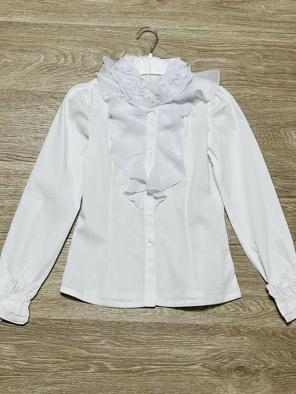 Только проверенные фабрики турции и Италии Блуза с длинным рукавом на пуговках По воротнику по шее красиво драпированы розы Воланы и манжеты Размеры 134-164 Можно начинать с 125роста Есть выбор не только школьного,но и детские коллекции разных размеров Есть опт и дропшипинг