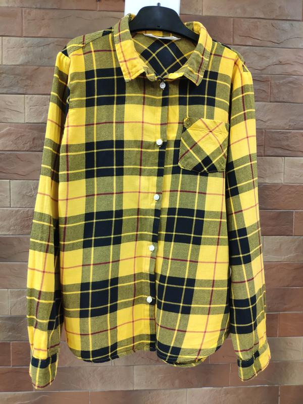 Яркая, фирменная рубашка на 12-13 лет. Застёгивается на пуговички. Состав 100% хлопок. Состояние идеальное. Замеры: длина по спинке от плеча 60 см, ширина между подмышками 45 см, плечи 36 см, рукав от плеча 55,5 см, по внутреннему шву 43,5 см.