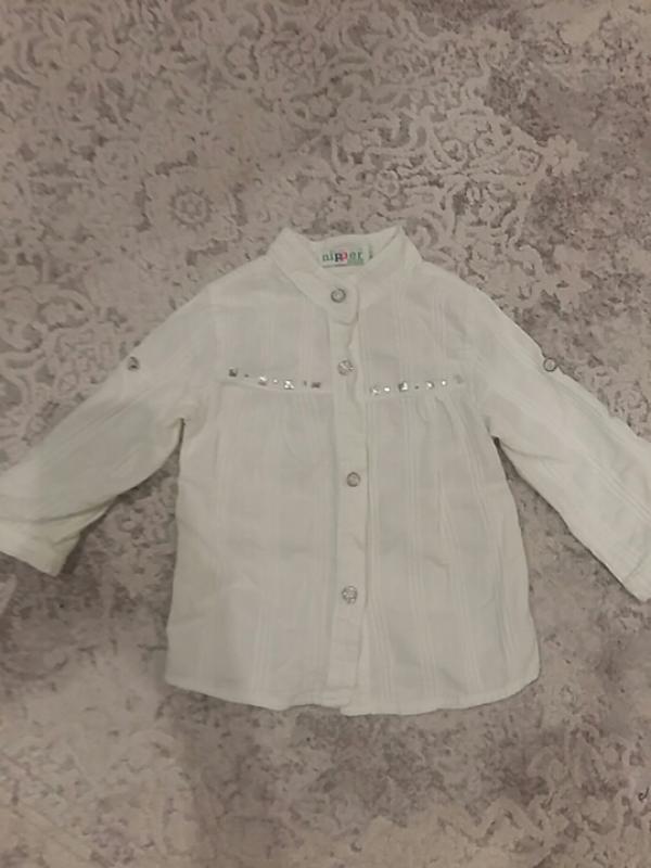 Рубашка натуральная,рукав и бока подворачиваются на пуговицу, нарядная и красивая,длина 38 рукав 27 пог 29.пуговички по всей длине растегиваются