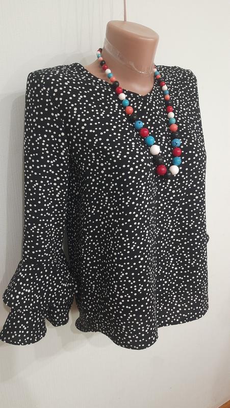Новенька блуза на дівчинку 12р. Довжина від плеча до низу зпереді 55см, довжина рукава з плечем 55см, ширина під пахвами 45см, довжина по спинці 58см.