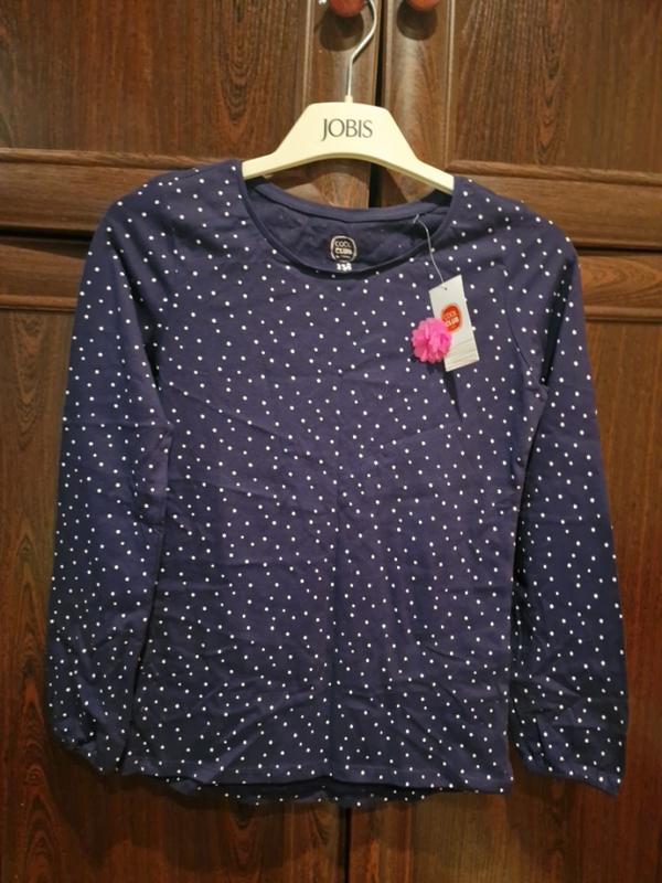 Блузка детская. Цвет: темно-синий в точку, имеет розовый цветочек. Размер: 158. Купили своей половине по снижению.