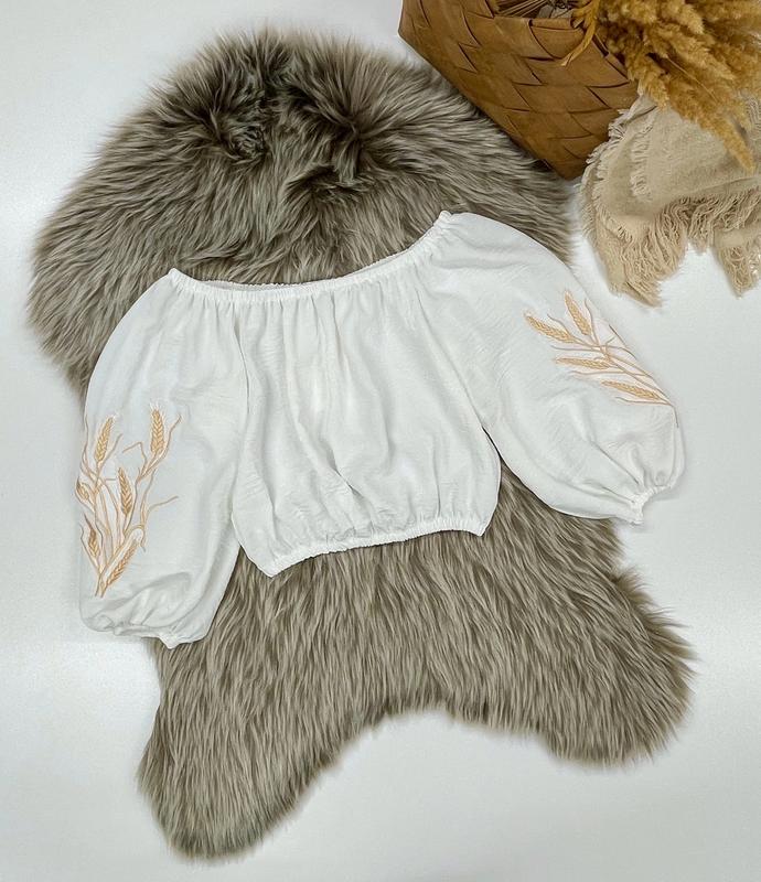 Таня арт 3576 Супер популярна вишивка колоски на трендовій блузі з американського крепу Супер якість ПОВНОМІРНІ зріст/довж. посередині/пог/рукав похибка+-2см 140-146/31/42/41-2шт 146-152/32/45/45-2шт 152-158/35/46/47-1шт 164-170/39/48/52-2шт