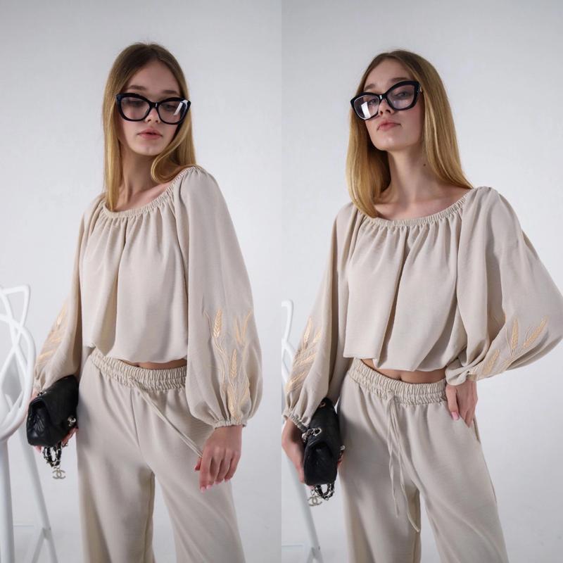 Таня арт 4426 Супер популярна вишивка колоски на трендовій блузі з американського крепу Супер якість ПОВНОМІРНІ Зріст/довж. посередині/пог/рукав похибка+-2см 140-146/31/42/41-1шт 146-152/32/45/45-1шт 158-164/36/46/50-1шт 164-170/39/48/52-1шт
