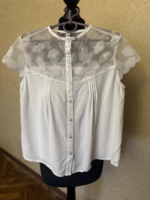 Дизайнерська кофточка. Купували у "Всі Свої". Оригінальна модель (на святі дуже малая ймовірність що хтось буде в такій же ). Красива і дуже легка. Ткань х/б з віскозою + кружево. Колір білий з кремовим теплим відтінком . Стан ідеальний.