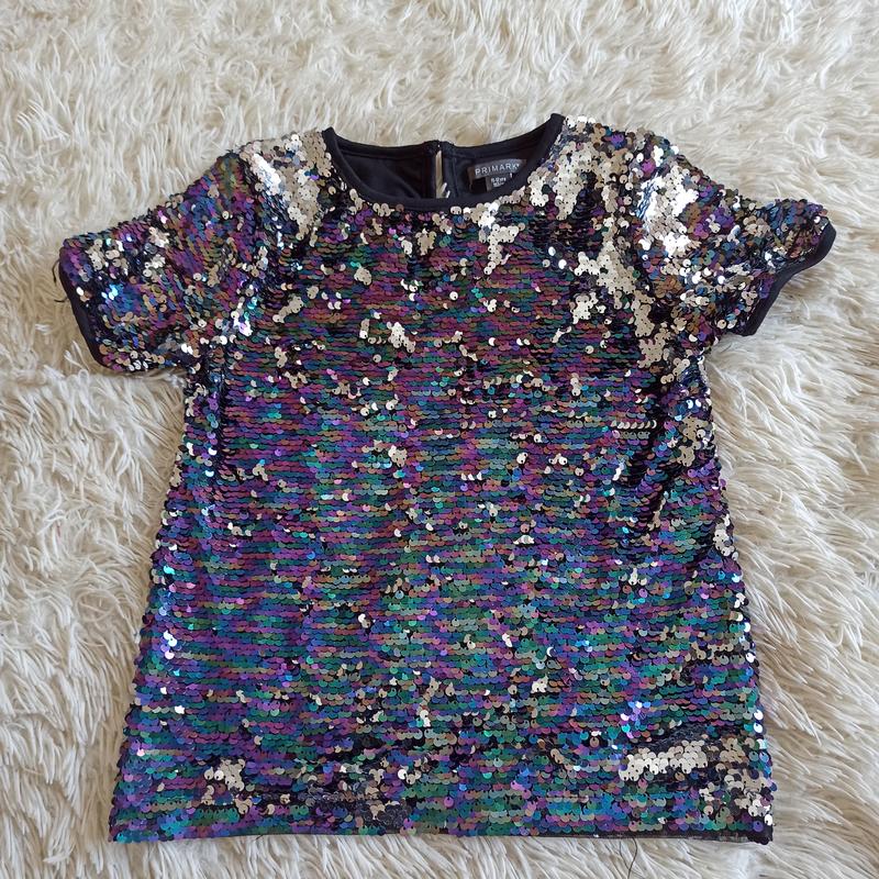 святкова блуза з двосторонніми пайєтками на підкладці . довжина по спинці 49см, напівобхват грудей 38.5см, плечі напівобхват 33см, довжина рукава 16.5. додаткові фото та заміри по запиту