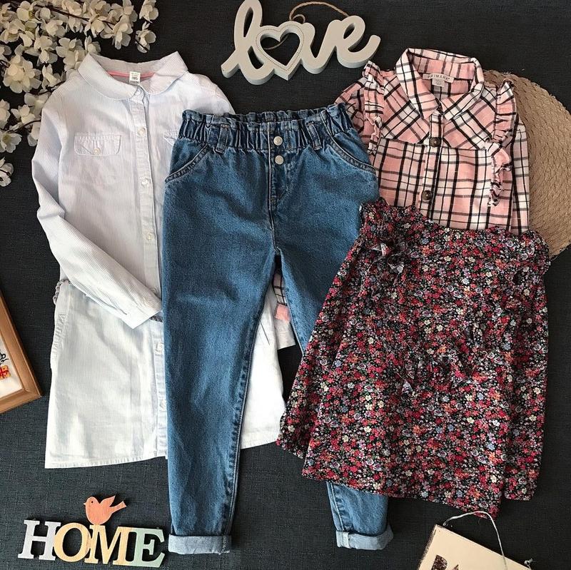 5/6 років. Блуза квіти 42 см, рукав 35 см. Рожева сорочка 43 см. Рукав 37 см. Джинси 63 см, пояс 27 см. Блакитна 58 см, рукав 51 см. Ціна Джинси 200 грн . Блуза та сорочки по 140 грн