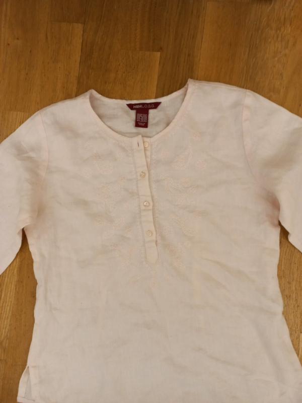 льон 100%,ніжного рожевого кольору блузка з вишивкою Розмір 8-10,довж.50 НОГ 42 ,плечі 33 Рукав 34.