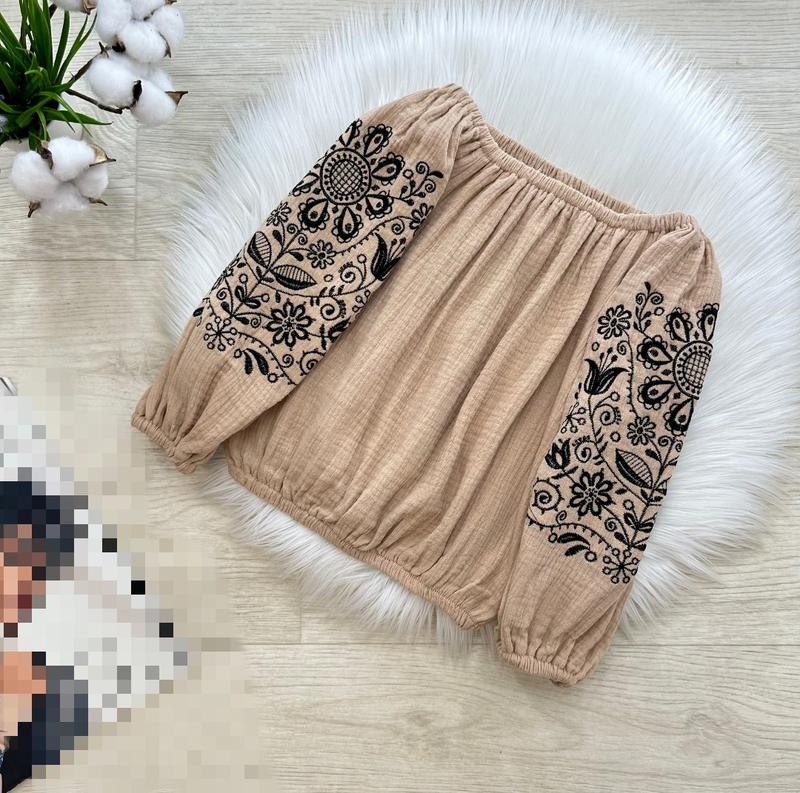 Муслінова блуза в стилі вишиванки 😍🩵💛 Обʼємні рукава🥰 ВИШИВКА 🤩 Легенька дихаюча тканина 💕 Тканина: муслін 🌸 Виробник: Україна 🇺🇦 ЗАМІРИ ⤵ +/- 1-2см!!! 🔸р.134- довжина 41см/ рукав від резинки 40см/ ПОГ 36см. 🔸р.140- довжина 43см/ рукав від резинки 44см/ ПОГ 38см. 🔸р.146- довжина 44см/ рукав від резинки 45см/ ПОГ 39см. 🔸р.152- довжина 45см/ рукав від резинки 46см/ ПОГ 41см. 🔸р.158- довжина 48см/ рукав від резинки 48см/ ПОГ 42см.
