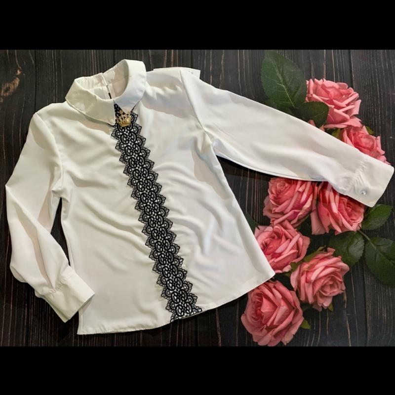 виробник: Україна ✔тканина: софт + кружево ✔додадково: св"яткова білосніжна блузка з брожкою , лекала хороші, на дитину сядає ідеально, в заді застібається на ґудзик ✅134- пог 38 см, довжина 50 см, рукав 50 см - 1 шт