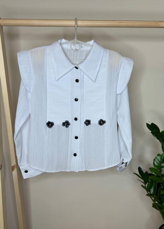Блузочка с длинным рукавчиком. Праздничное, декорированное нежными цветочками. Отлично дополнит образ. Размеры: 140,152 (маломерит)