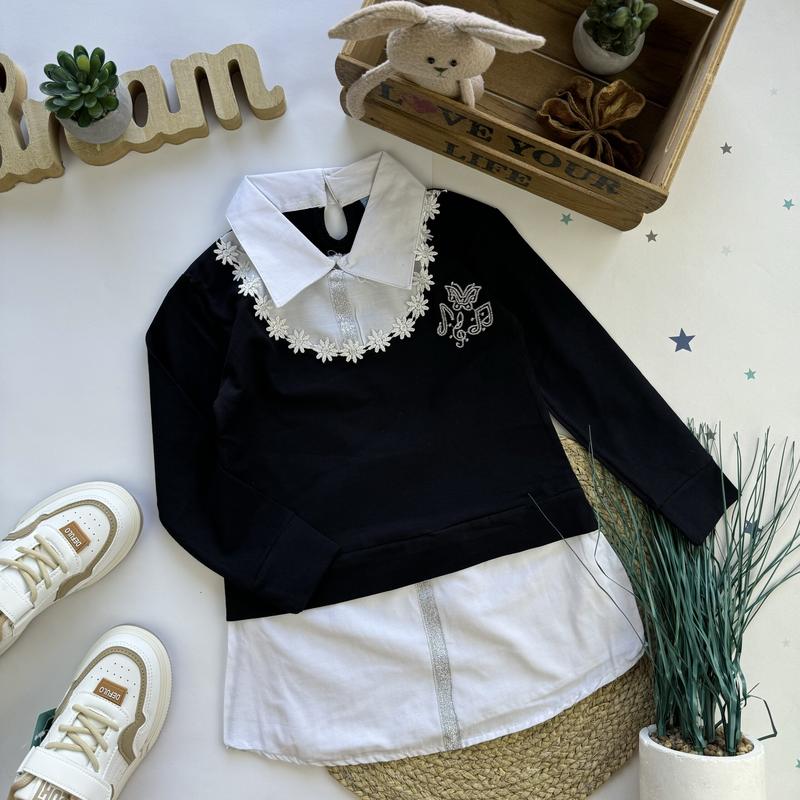 Неймовірно стильна подовжена блуза – обманка! Виробництва Туреччина! Малюнок – каміння. Прикрашена квітами. Застібається на ґудзик. Розміри: 5/6 – рукав 37/ довжина 48 7/8 – 42/ 52 9/10 – 43/ 55 11/12 – 44/ 57 13/14 – 45/ 58 *малюнок – каміння може відрізнятись