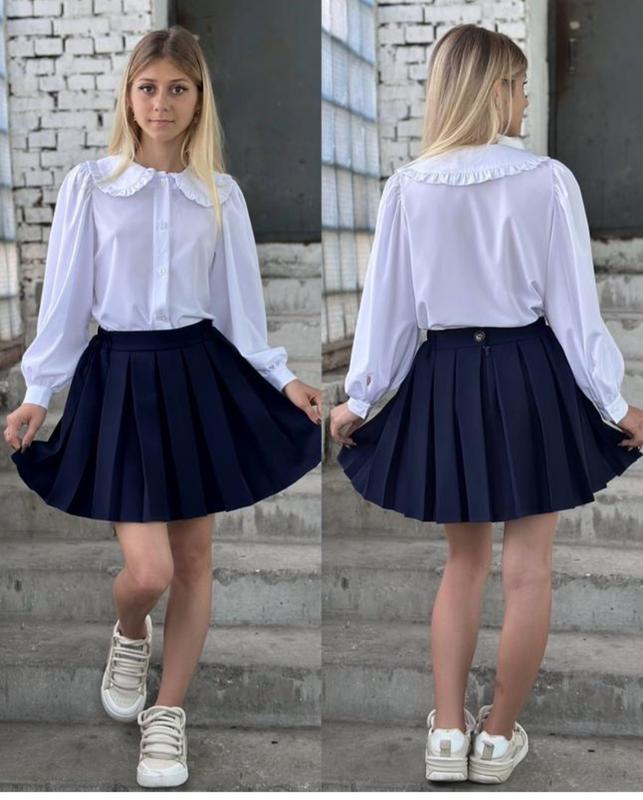 Обратите внимание на глубину складок этой юбки. Итак , юбка пачка в двух цветах синий и черный, размеры с роста 128 по 160 см , цена 810 грн . Блузка мой фаворит !!!! Она великолепна !!!!! Цена 760 грн