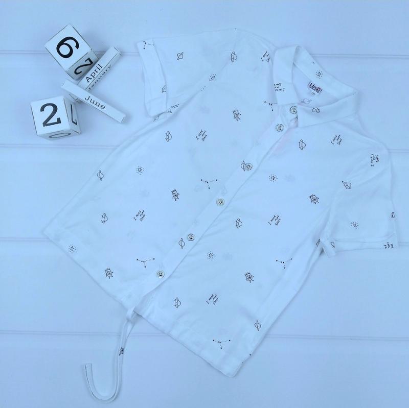 Блузка ⭐Тканина: 100% бавовна ⭐Колір: білий ⭐Додатково: низ на кулісці/малюнок принт тканини ⭐Виробник Україна р.122-довжина від плеча 42 см/ПОГ 33 см-1шт р.140-довжина від плеча 50 см/ПОГ 36 см-1шт