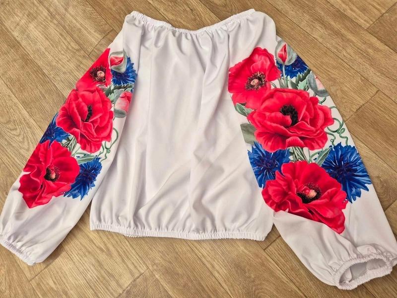 В наявності 💙💛 Ціна : 590грн.🔥 Блузи із шикарним розписом для красунь 💗😍 тканина софт, на рукавчиках малюнки не линяють! не тріскаються! рукав 3/4 Заміри: довжина/пог/рукав від горловини 116 - 34/28/38 122 - 36/30/42 128 - 40/32/42 134 - 42/34/44 140 - 44/36/46 146 - 45/39/49 152 - 47/42/52 158 - 48/46/55 116 - 1 122 - 1 128 - 1 134 - 1 140 - 1 146 - 1 152 - 2 158 - 1