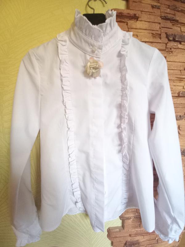 Дуже гарна, білосніжна блузка. Стан ідеальний.Шла з брошкою, можна не одягати. Бавовна, дуже комфортна до тіла. Заміри: Плечі-32 Грудь-38 Дл-53 Рукав-51 Одягли кілька разів, встановлені нові речі.