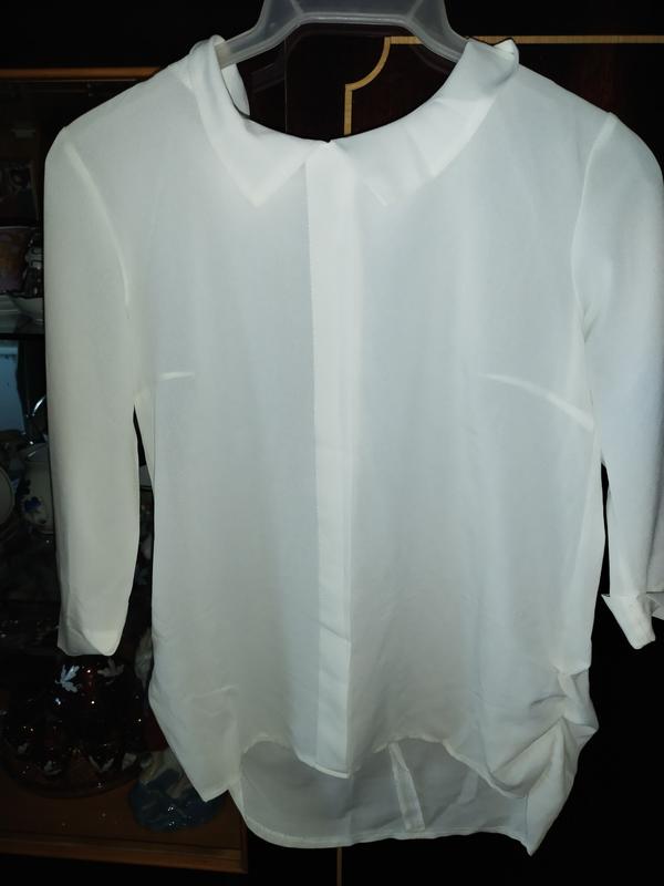 Блузка в нормальному стані. Вдягалась на свята. Є НЮАНСИ: іржаві цятки від прищепки на правому плечі, ховаються під коміром, дві защіпки на спинці внизу(на фото). Тканина не тягнеться, напівпрозора, молочного кольору (не чисто біла). Рукав 3/4. В місці, де пояс, тканина зібрана з обох боків резинками. Спереду виріб коротший, ніж ззаду. ЗАМІРИ: довжина спереду -55 см, спинка на 7 см довше, ширина під пахвами - 44 см. Додаткові фото та відео зроблю за запитом. Передоплата на картку Приватбанку. Повернення можливе за рахунок покупця не пізніше наступного дня. Пересилаю Новою та Укрпоштою. НП можлива відправка за акційною ціною.