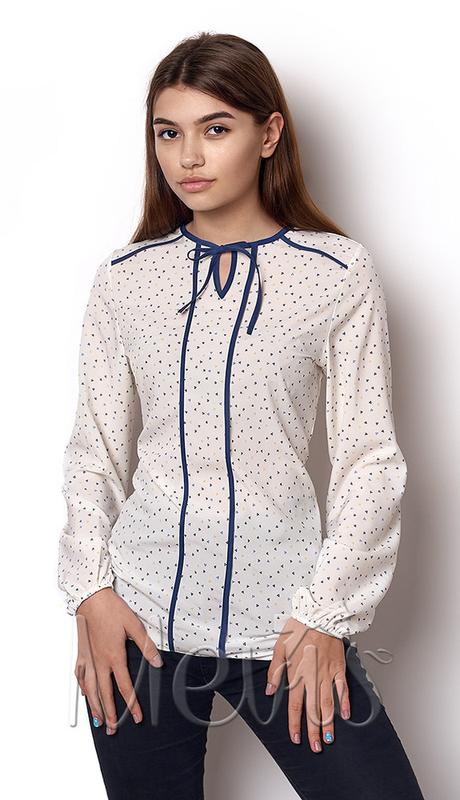 Блузка Mevis моделль 2423 колір молочний, синя окантовка, дрібний яскравий візерунок наявності 146 146 р плечі 31 см, пог 40 см, довжина по спинці 61 см Склад: 50% віскоза, 33% бавовна, 17% поліестер Доставка: Нова пошта, Укрпошта, Justin.