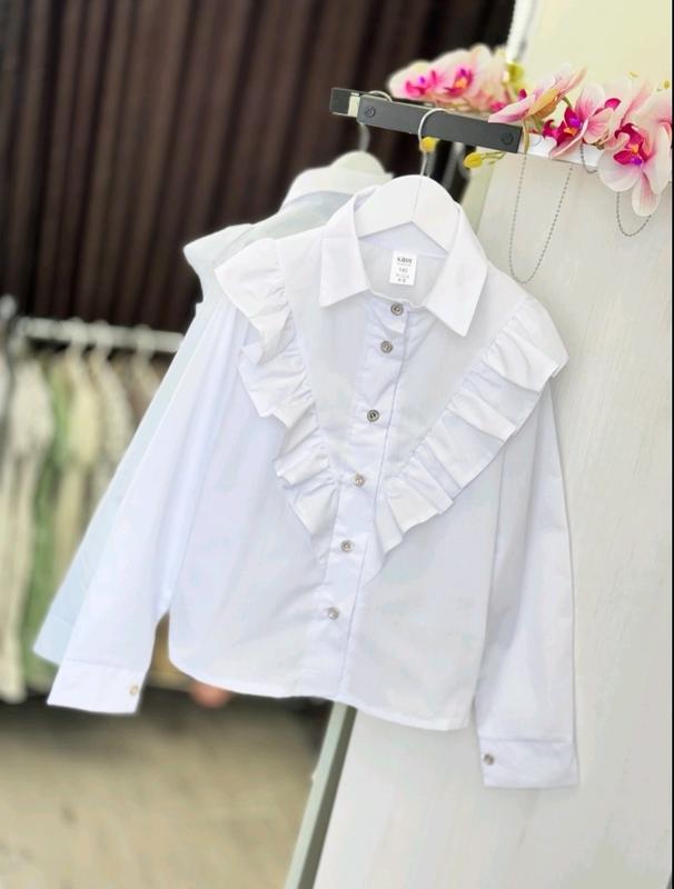 В НАЯВНОСТІ 💙💛 НОВА ЦІНА 420са Шкільна елегантна сорочка для красунь 💗 Склад сорочкова тканина хб, натуральна, не парить довгий рукав, брошка в комплекті можна носити з брошкою і без Заміри: довжина/пог/рукав 128р - 46/37/47 134р - 48/39/48 140р - 49/41/50 146р - 50/42/52 152р - 51/42/54 РОЗМІРИ: 140 - продано 146 - 2 152 - 3