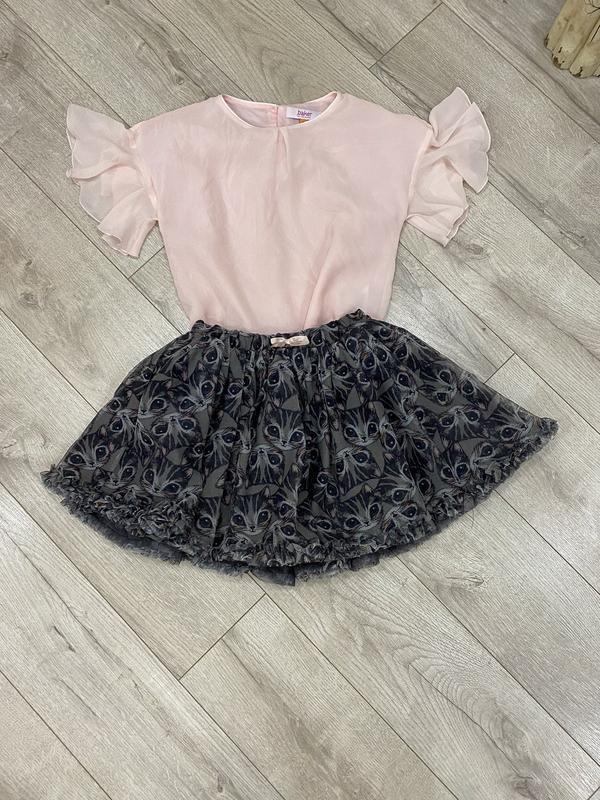 Дитячий набір одежі б/у в гарному стані на вік 6-7років,ріст 122смЗаміри блузки:38-груди,47-довжина.Юбка:27-пояс,резинка,31-довжина.Блузка на підкладці,юбка на підкладці і дві юбки фатінові.
