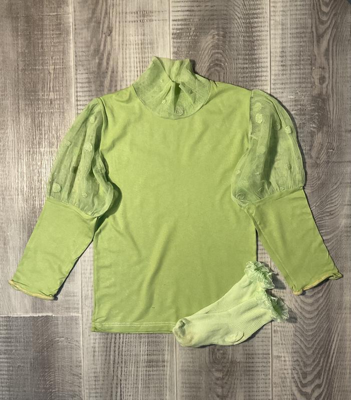 Детский гольф-блузка салатового цвета ✨ Мягкий и трикотажный гольф с гипюровыми вставками – идеальный вариант для праздничного образа! Подходит для садика, прогулок или в качестве базового слоя под кофты и свитера. 🔹 Размер: 98-104 (3-4 года) 🔹 Замеры: • Длина - 42 см • Рукав – 37 см • Плечи - 8 см • Полуобхват груди - 29 см • Полуобхват горловины – 16 см (хорошо тянется) 🔹 Состояние: отличный, без дефектов 🔹 Материал: мягкий, приятный к телу трикотаж 🔹 Особенности: ✅ Хорошо тянется и не сковывает движения ✅ Яркий салатовый цвет ✅ Гипюровый воротник и воланы на рукавах Носочки с бахромой в подарок, чтобы дополнить лук. ✨ Идеально подходит для дополнения любого образа! 📍 Доставка по почте. 📩 Пишите в сообщение – с удовольствием ответьте на все вопросы!