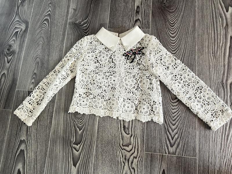 Нарядная накидка кофта из плотного гипюра Длина 32 см Рукав 40 см Грудь полуобхват 32 см Плечи 27 см