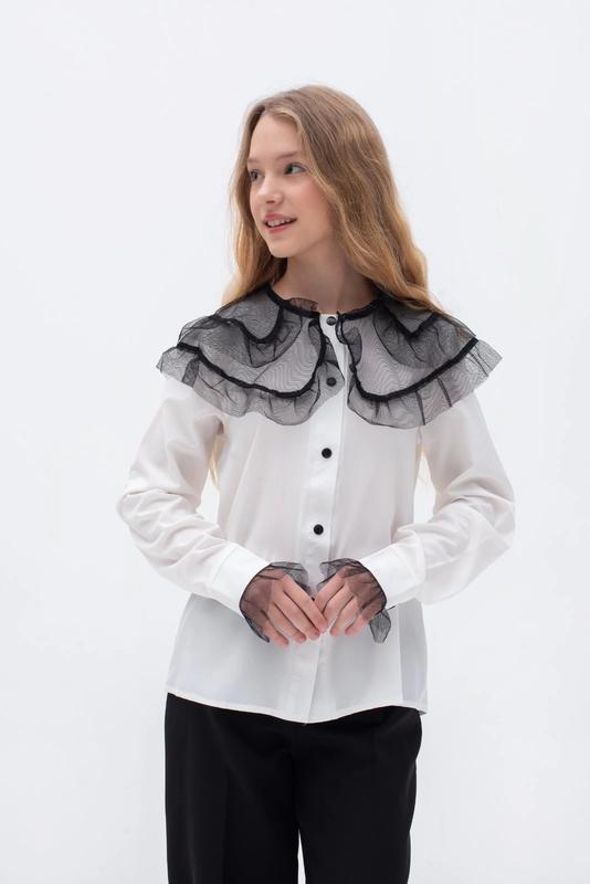Нарядная блуза Застегивается на кнопки, манжеты на кнопках. Ткань - софт, украшена фатином. Цвет - молочный.✔️ 140р- длина - 51см, полуобхват груди - 40см, рукав от плеча - 54см. 146р- длина - 52см, полуобхват груди - 42см, рукав от плеча - 57см. 152р- длина - 55см, полуобхват груди - 43см, рукав от плеча - 61см. 158р- длина - 57см, полуобхват груди - 45см, рукав от плеча - 62см. 👉За Безопасную оплату уточняйте ⚠️Через кнопку КУПИТЬ тельки по полной оплате на карточку, поэтому не жмите ее, до уточнения деталей 🚚Новая почта, есть наложка с предоплатой 🚛 Укрпочта- +5грн упаковка (укрпочтой наложки нет ❗️) По оплате и доставке уточняйте дополнительно, к покупке! Возвращение отсутствует, делайте свой выбор обдуманно. Осмотрите товар в отделении, претензии из дома не рассматриваются! м.ст