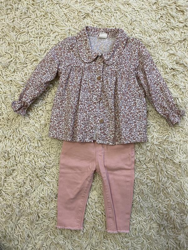Дуже класний набір для дівчинки Окремо можна носити як блузку так і штанці Розмір 4-6 місяців Орієнтуватись по замірах
